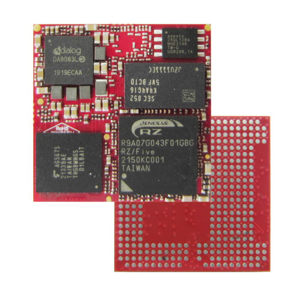 The MSRZFive is the System-In-Package based on Renesas RZ Family architecture offering high-performance 64-bit RISC-V core. The MSRZFive combines compact design and a wide range of services, bringing low power consumption, thermal efficiency and low-cost to embedded systems. The MSRZFive was designed to meet the specifications of the OSM-standard as much as possible.