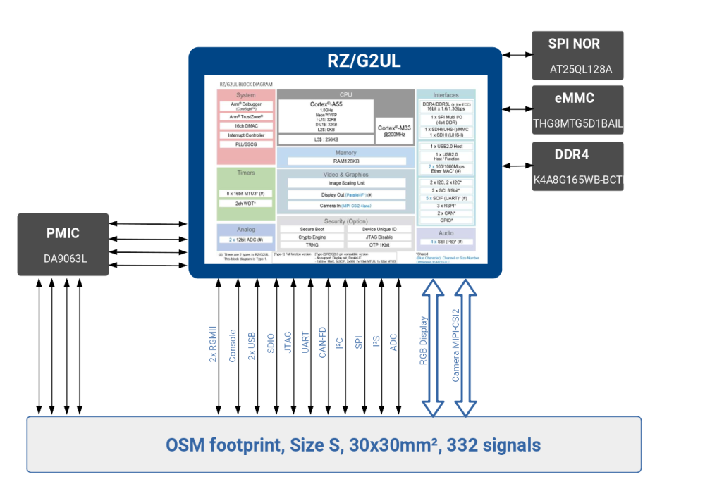 The MSRZG2UL is the System-In-Package based on Renesas RZ/G2UL Family architecture offering high-performance Cortex-A55/Cortex-M33 core. The MSRZG2UL combines compact design and a wide range of functions, bringing low power consumption, thermal efficiency and low-cost to embedded systems. The MSRZG2UL was designed to meet the specifications of the OSM-standard as much as possible.