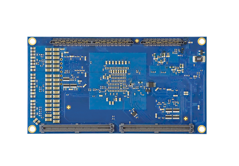 4 Samtec connectors connect MAX to the baseboard. Two SEAF connector, 200 pins each, provide the FPGA I/O signals, two QRF8 connectors provide he 24 transceiver channels to the application board. MAX offers 232 I/O pins as well as 52 HPS pins.