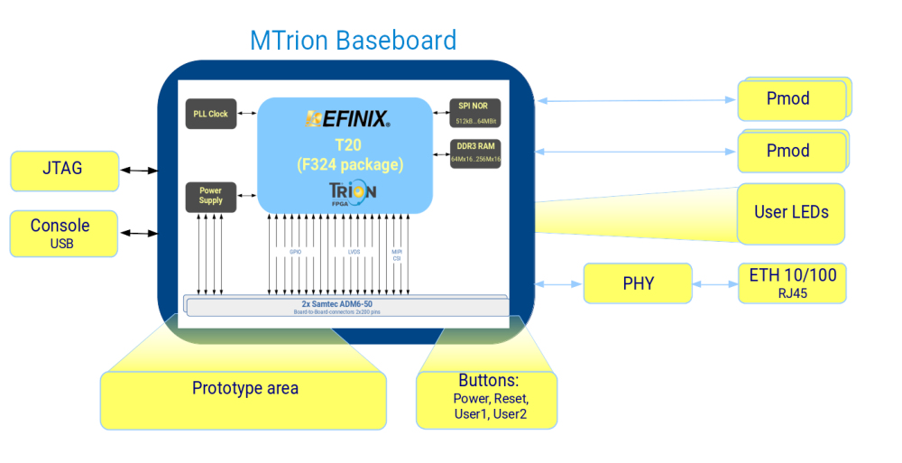 The MTrionEVK supports a quick start-up of FPGA projects and can easily be used as a fast-prototype platform.